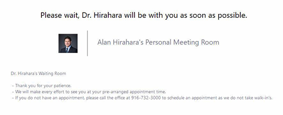 Telemedicine visits with Dr. Hirahara are by appointment only and must be scheduled in advance – there are no “drop-in” appointments available.